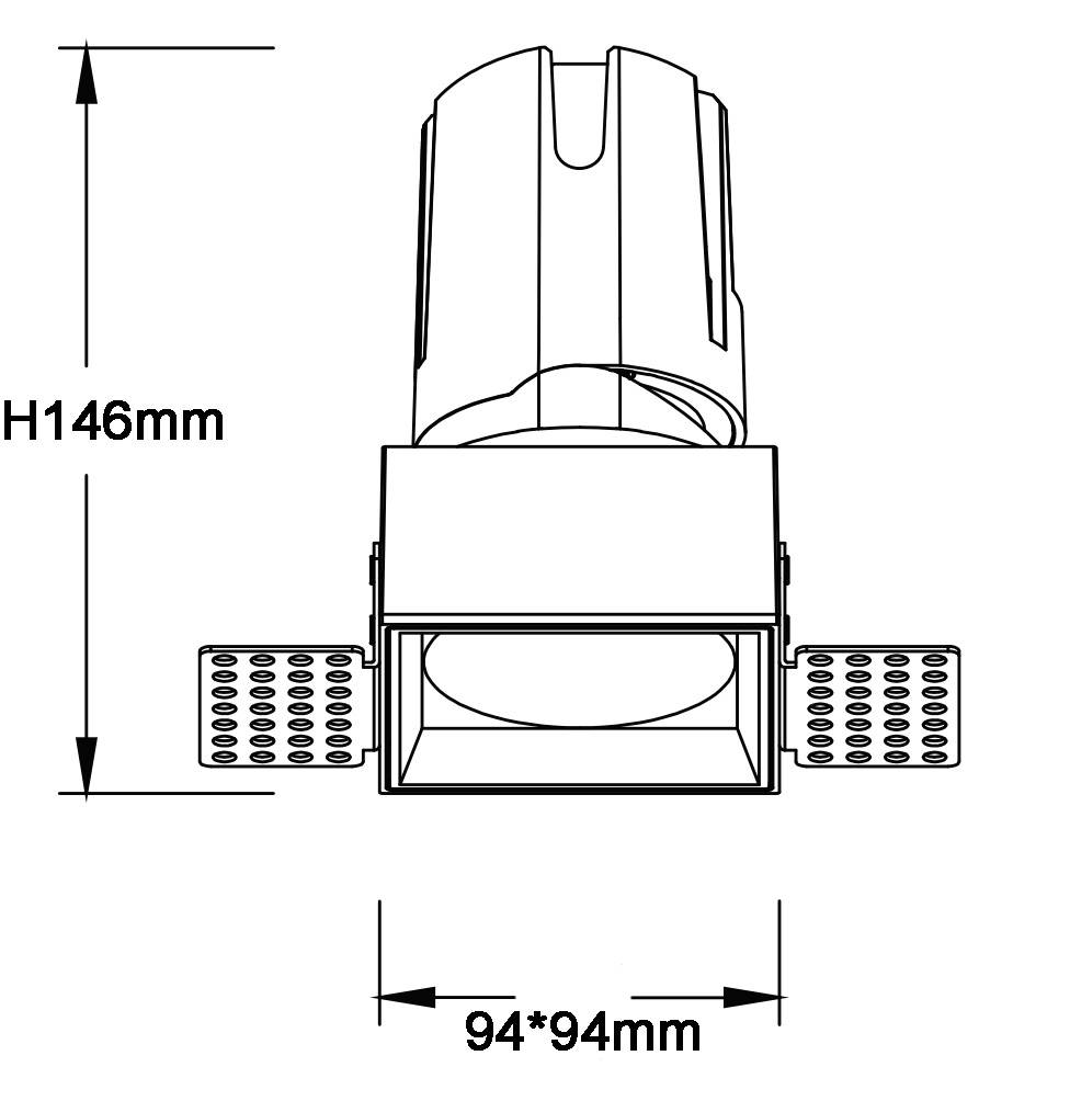 Downlight Lavov de la familia ZENITH IP65S Trimless con una potencia de 30W y un haz de 12 grados. CCT 3000K. Color Negro. Con un flujo luminoso total de 2400lm y una eficacia luminosa de 80lm/W. Fabricado en Aluminio inyectado a presión. Grado de protección IP65. Aislamiento Clase II. Driver DALI. UGR<19. CRI90.