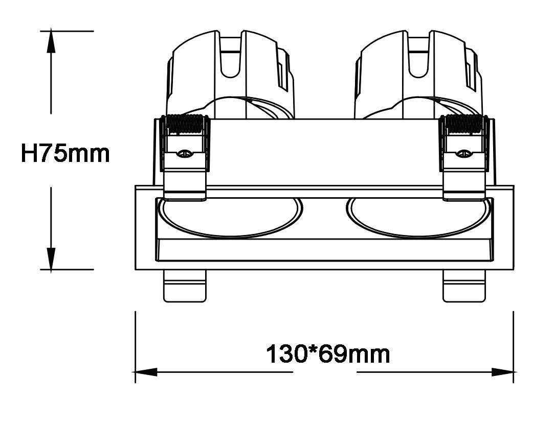 Downlight Lavov de la familia ZENITH IP65SX2 con una potencia de 2X7W y un haz de 36 grados. CCT 3000K. Color Negro. Con un flujo luminoso total de 2X560lm y una eficacia luminosa de 80lm/W. Fabricado en Aluminio inyectado a presión. Grado de protección IP65. Aislamiento Clase II. Driver DALI. UGR<19. CRI90.