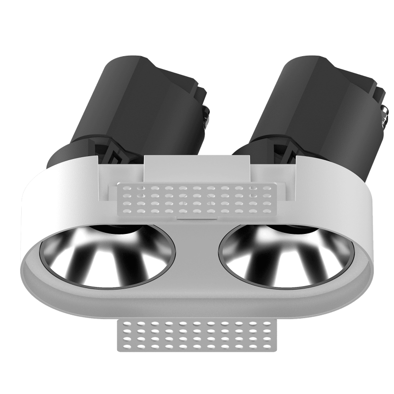 Downlight Lavov de la familia ZENITH IP65R X2 Trimless con una potencia de 2X20W y un haz de 60 grados. CCT 3000K. Color Blanco. Con un flujo luminoso total de 2X1600lm y una eficacia luminosa de 80lm/W. Fabricado en Aluminio inyectado a presión. Grado de protección IP65. Aislamiento Clase II. Driver ON/OFF. UGR<19. CRI90.
